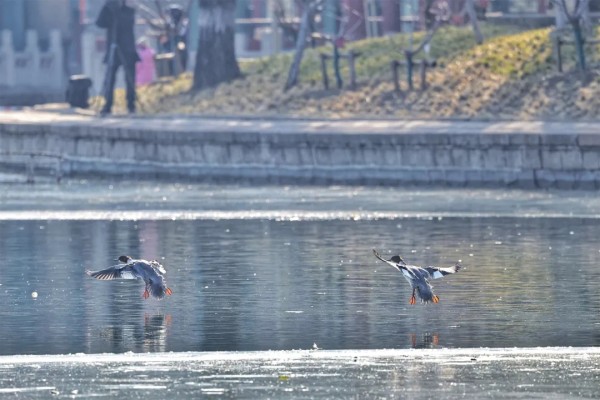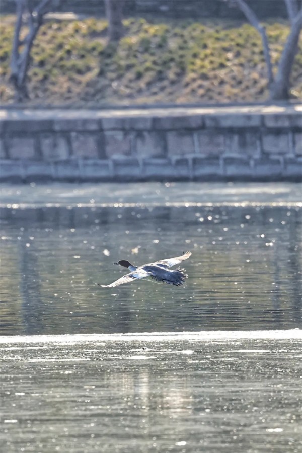 薄冰渐凝,候鸟翩跹,绿意未褪。这方水域见证着东城生态的细腻守护与蓬勃生机,也让每个在此驻足的人悄然融入这幅冬韵流转的画卷中。