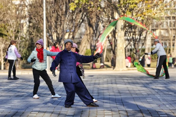 晨光里,几位市民正缓缓起式,太极拳的圆融轨迹与天地节律相合,吐纳间白气氤氲,人与园共呼吸。
