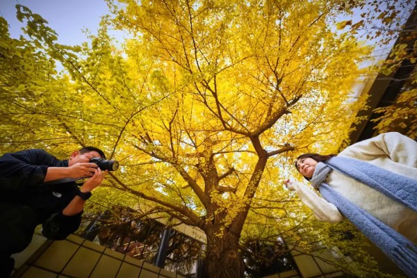 秋光漫入首都宾馆,院内两株古银杏树化作黄金瀑布,让整座庭院沉浸在鎏金暖意里,将秋日的绚烂推向极致。