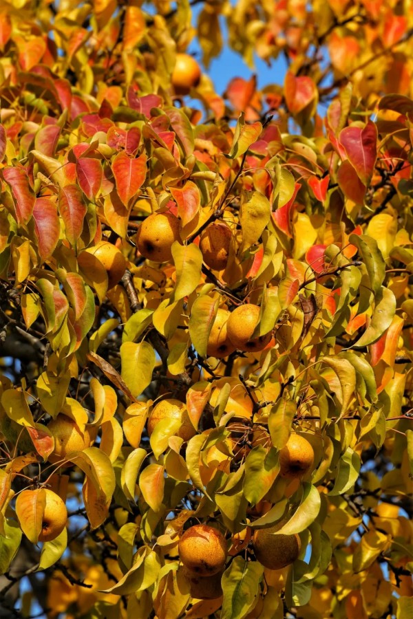 梨树亦不负秋光,金黄的梨子沉甸甸地弯着枝头。风过时偶有果实轻落,拾一枚捧在手心,便是秋日最鲜活的馈赠。