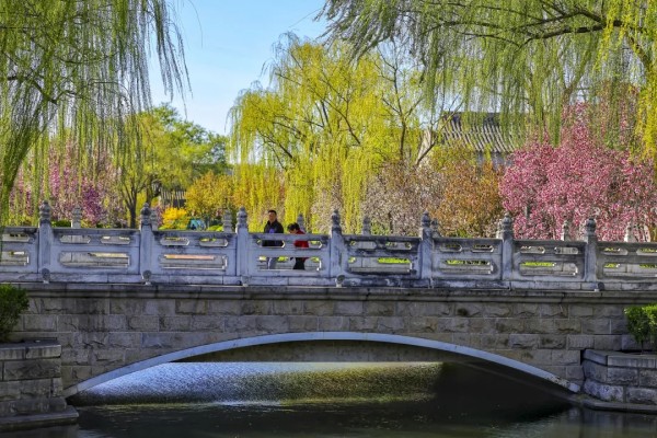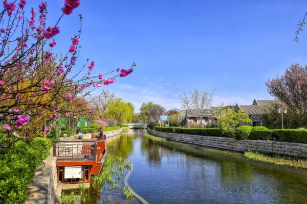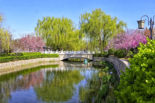 玉河澄澈如镜,将岸边的花红柳绿尽数揽入怀中。微风拂过,涟漪轻起,满河春色随之荡漾。