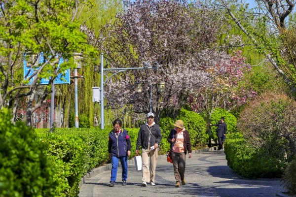 游人三三两两,或沿河漫步,赏花观水;或驻足花下,定格春日芳华。