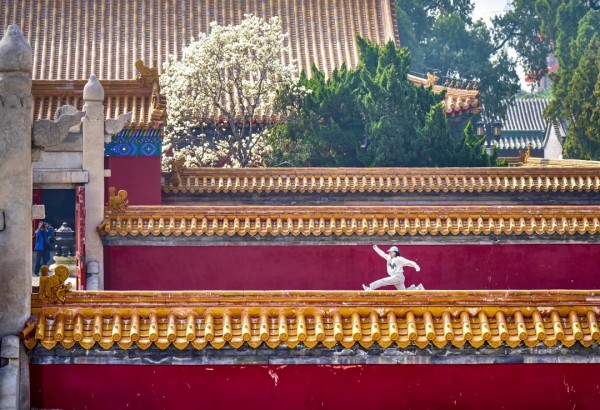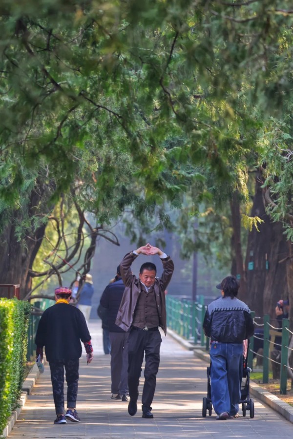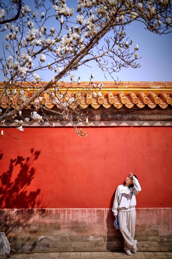 方泽坛里格外热闹——有人静赏玉兰、定格古建风华,有人循着春日兴致,轻巧一跃,“跳坛”借位,定格下灵动瞬间。