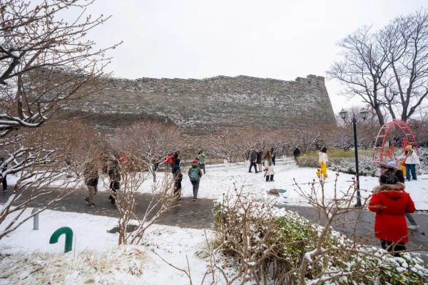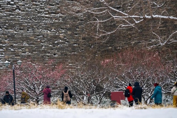 大美东城|雪落梅初绽,明城墙美成诗!