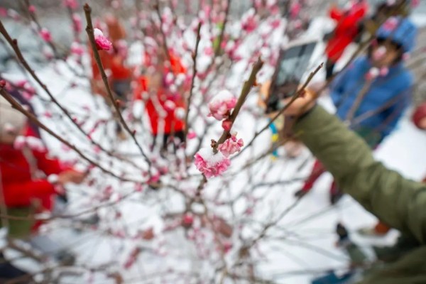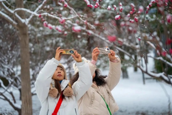 捕捉雪梅相映的绝美景致