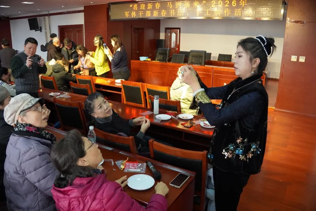 近日,东城区退役军人事务局举办了“喜迎新春 马到福来”暨2026年军休干部新春书法手工制作活动。活动吸引了来自东城区9个军休所的110名军休干部参加。