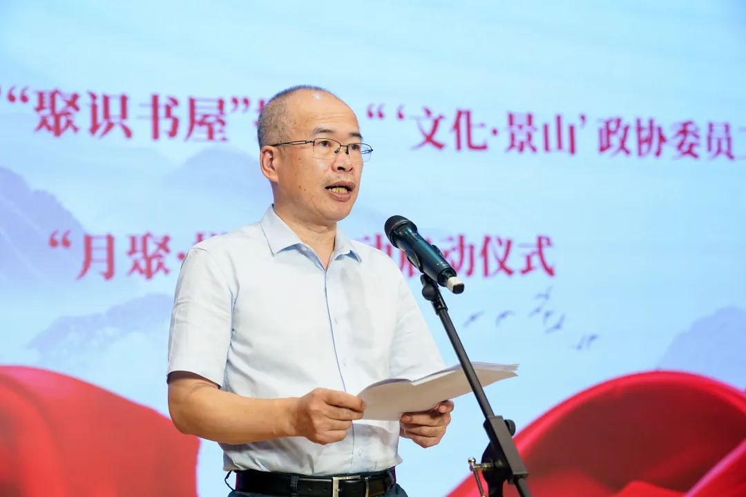近日,东城区政协“悦读书屋”“聚识书屋”授牌、“‘文化·景山’政协委员工作室”揭牌仪式在美后肆时景山街道市民文化中心举办。区政协主席汤钦飞出席活动并致辞。