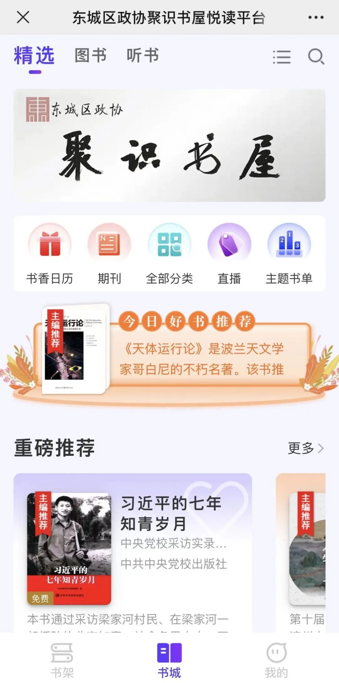 同时,依托东城区文沁阁书店、美后肆时、角楼图书馆及“中文在线”在区政协微信公众号上开通“东城区政协聚识书屋悦读平台”,为广大政协委员开展读书学习搭建载体、创造平台,营造浓厚氛围和良好风气,通过读书活动进一步帮助委员提升能力素质、提高履职水平,更好凝聚共识。