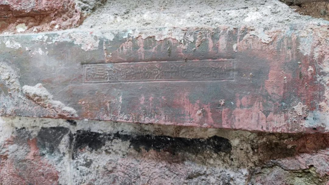 施工现场,工人们还发现了琉璃瓦,以及带有戳记的墙砖。在工人的指引下,记者在南院东墙上找到了一块带有文字戳记的墙砖,上面“嘉靖十四年春季窑户孙明造”的戳记清晰可辨。工人们说,在南院,这样的墙砖有很多。