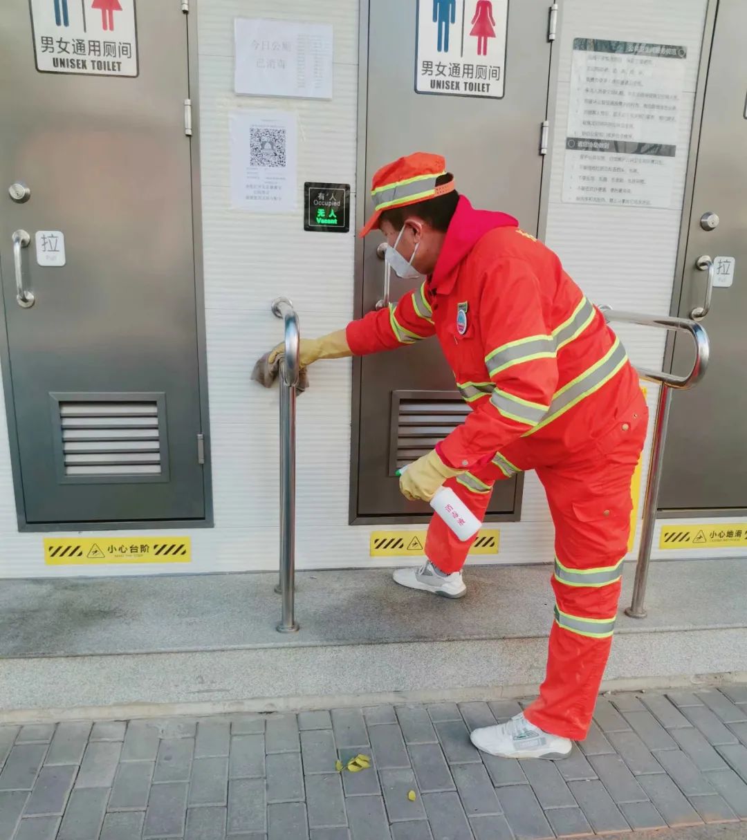 区环卫中心加强平房区公厕消杀频次,守牢疫情防控“卫生线”平房院居民家没有户厕,公厕的使用成为疫情防控的风险点。为有效切断病毒传播途径、防止新冠病毒通过环卫公厕形成新的传播渠道,区环卫中心加强了对公厕消杀管理,增加防护用品储备、提高公厕消杀频次。保洁员每日利用消毒液对公厕进行两次以上全面消毒;水龙头、扶手、烘手器、洗手器、马桶坐垫及按钮等处每日消毒不少于4次,对风险区域公厕进一步增加消杀频次,确保消杀到位、不留死角;消毒半小时后,用清水擦拭物体表面,并在公厕明显位置张贴消杀公示;在公厕门口张贴健康宝二维码,倡导居民扫码如厕、做好自身防护。
