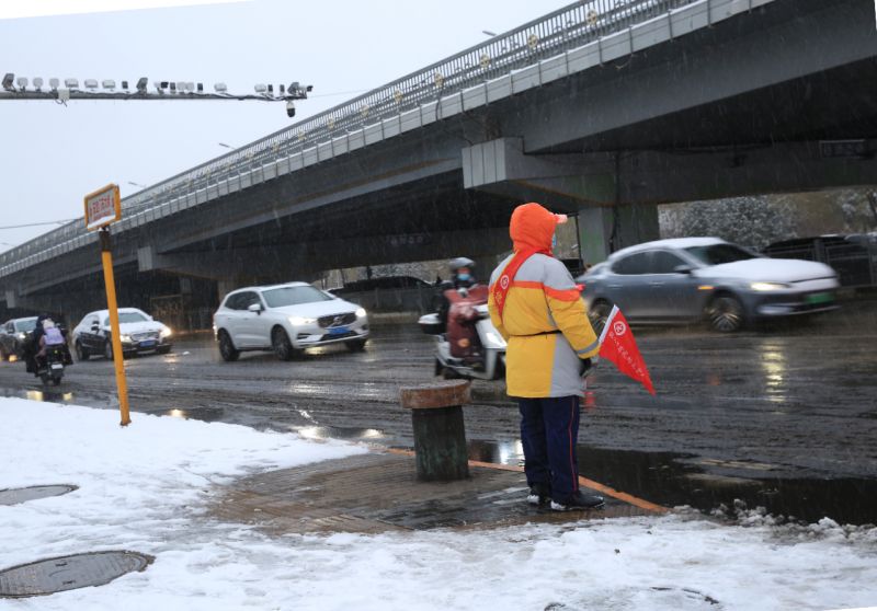 百余警力保障雪天早高峰