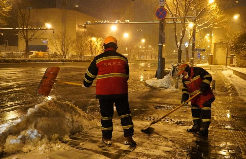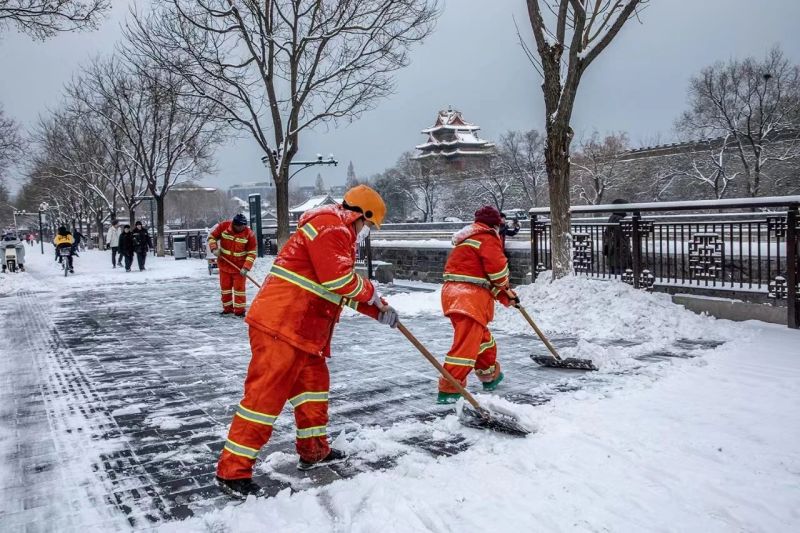 为应对本次降雪,东城区动员了由846名作业人员及管理人员组成的专业清雪队伍,准备了113辆融雪水车、7台撒布器、2辆多功能除雪车、27台步道除雪机械设备、1002.5吨固态融雪剂。此外,东城区环境卫生服务中心还开设了多处环卫暖心驿站,自凌晨4点开始一直开至晚上11点,为环卫工人提供热水、暖风、桌椅等暖心服务,让他们在忙碌的工作中能有一个暖心的休息场所。