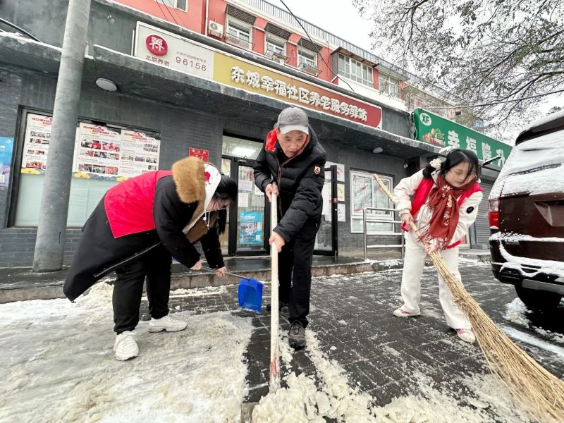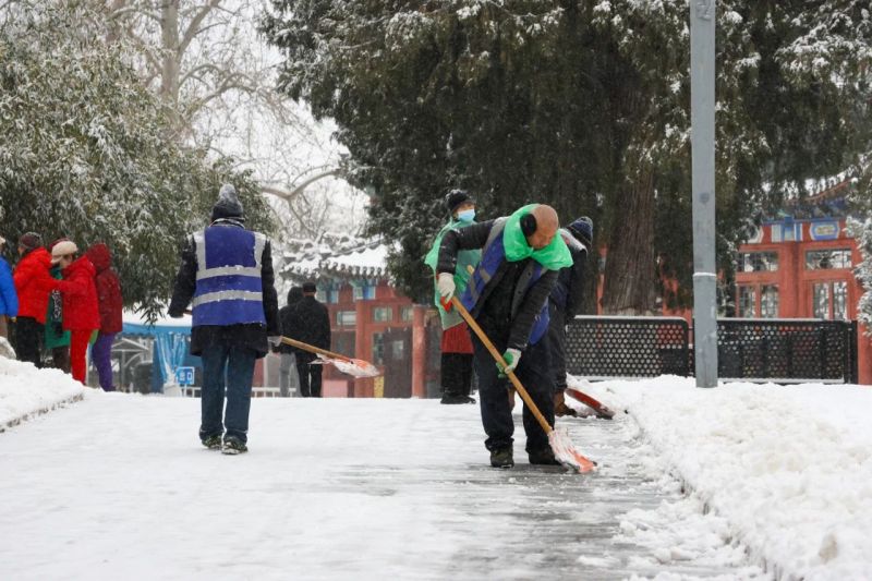 同时,东城区对背街小巷和老旧小区周边的便道积极开展扫雪工作。东四平房区物业组织保洁人员清扫胡同积雪,重点做好生活服务点位周边积雪清理工作,保障胡同内居民的出行。负责东直门街道“大物业”服务的北京城建物业公司在今天早上7点前就完成了辖区内13条背街小巷以及五十五中、史家实验学校等校园周边的积雪清扫工作,保证了市民及学生在早高峰期间安全通行。