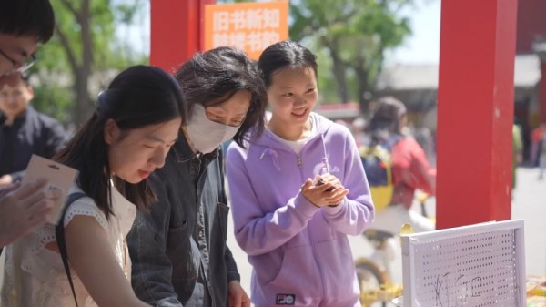 父子一同翻阅《三毛流浪记》,在斑驳插画间讲述属于一代人的童年记忆;游客手持淘来的经典旧书与钟鼓楼造型冰箱贴满意而归,将文化记忆凝于可触可感的载体之中。这些跨越年龄与经历的情感共鸣,生动诠释了市集“让旧书找到新知己”的初心与追求。