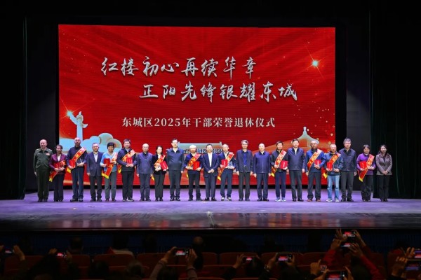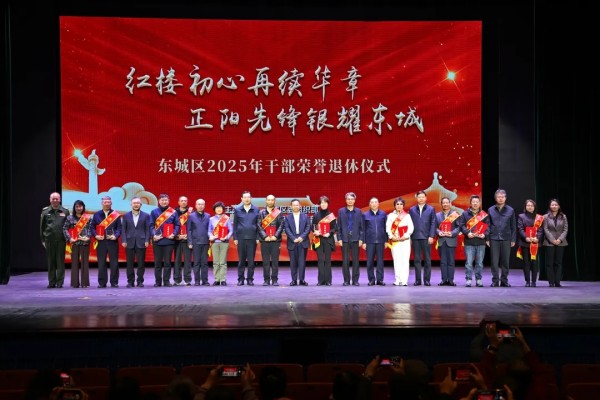 10月20日,“红楼初心再续华章 正阳先锋银耀东城”东城区2025年干部荣誉退休仪式在区工人文化宫隆重举行。北京市委组织部副部长、市委老干部局局长张彤军,区领导孙新军、陈献森、肖志刚、汤钦飞、王达品、王华伟、王永民、李强、黄丹、白京涛、王佑明、胡异峰、何兴达、冯建国、张伟、贾邦,区法院院长何马根参加。