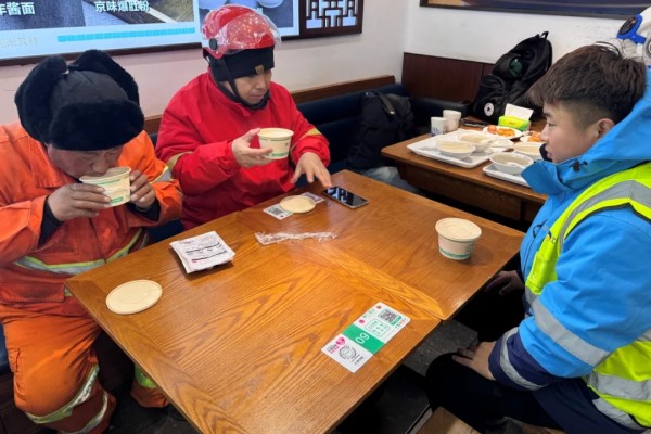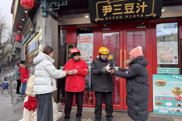 “天气冷,喝杯热豆浆暖和一下!”安定门街道尹三豆汁店门口,热气腾腾的豆浆刚端出,不到半小时,20杯就全部分发到外卖骑手手中。这并非临时善意,而是街道20个“1㎡暖心服务角”的日常。这些遍布商户的小小角落,常年为户外劳动者提供免费热水、应急充电、临时歇脚等常态化服务,成为奔波路上的可靠“补给站”。