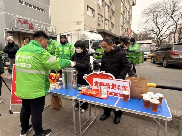 东花市街道的“流动补给站”更是暖意升腾。党员志愿者们化身“暖心服务员”,递上热气腾腾的汤圆、驱寒暖胃的姜茶和实用的暖宝宝,爱心企业必胜客主动加入,送来香醇热咖啡。“身上暖了,心里更暖!”一位刚送完货的小哥捧着热汤圆,笑得格外灿烂。