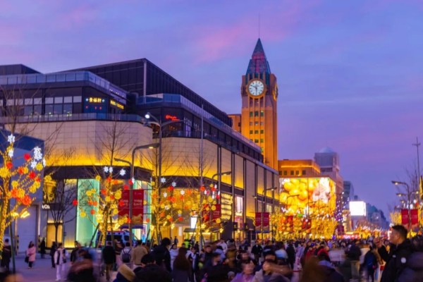 王府井商圈“金街过大年”活动精彩纷呈,南街化身潮流首发秀场,集结李宁“龙店”、名创优品等12家知名品牌首展首秀;北街串联未来科技、国潮文化与地道风味,叠加“王府井发布”直播间公益直播,掀起新春消费热潮,推动商圈销售同比增长44.68%。