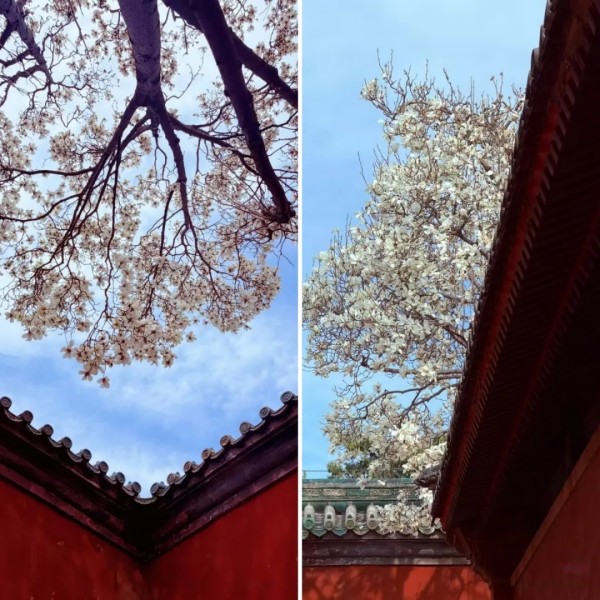 天坛公园的春日同样韵味十足,成真门东侧的山桃树吐露芳华,斋宫里的玉兰花依墙而开,阳光洒落时,花瓣的光影在红墙上斑驳摇曳,成为新晋网红打卡点。