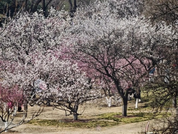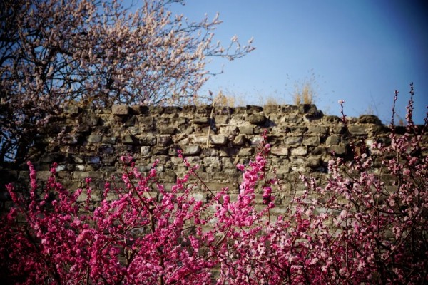 明城墙遗址公园内,千余株梅花与桃花、玉兰相映成趣,走在栈道上,两侧花海簇拥,阵阵花香扑面而来,三花交织的美景让游客们流连忘返,纷纷用镜头留住这春日限定的美好。