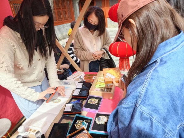 “入春以来,文创产品的销量比平时翻了好几番,尤其是梨花相关文创和通关文牒盖章本,特别受游客欢迎,大家都喜欢带点有古建特色的好物回家。”智化寺文创空间的工作人员介绍道。