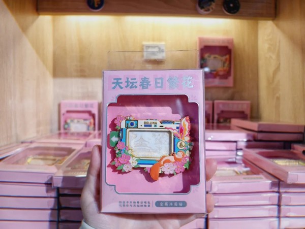 天坛文创店上新的“繁花似锦”三折叠冰箱贴一经推出便成爆款,“天坛春日繁花”冰箱贴还能让游客亲手为简笔画卡片填色,记录自己眼中的天坛春日,二十四节气冰箱贴融合天坛建筑之美与节气景色,独具匠心。