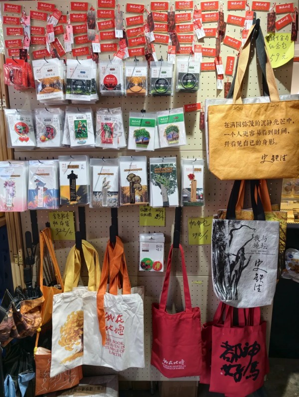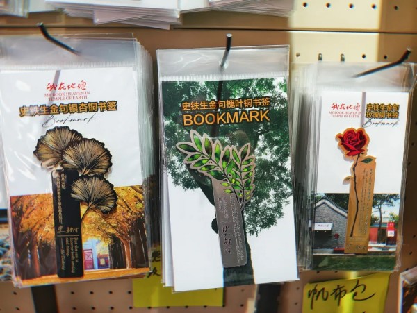 地坛公园的“我在地坛”书店里,史铁生金句主题的铜书签、地坛景色冰箱贴、地坛四季明信片等文创,让文艺气息与春日美好相融。