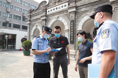 7月2日、3日,东城公安分局内保大队会同治安支队、反特巡支队、东城消防支队成立3个检查组,对全区19个高考考点校开展联合检查。