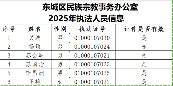 北京市东城区民族宗教事务办公室2025年度执法人员信息