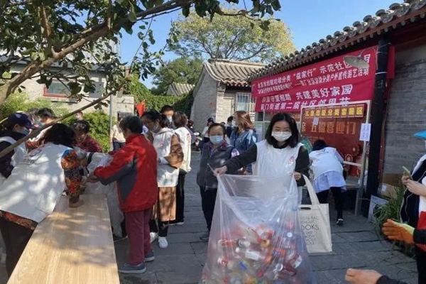 为提高社区垃圾分类项目知晓度、居民参与度,进一步推进北京市妇联垃圾分类“益家行”示范社区项目开展,10月6日上午10点,由北京市妇联、东城区妇联指导,草厂社区主办,街道妇联、街道网格化服务管理中心、草厂社区巾帼志愿者团队、北京昭阳社会工作发展中心及北京大学实习团队、北京东方容和物业草厂分公司、北京红爹之家等多方联合协办的“垃圾分类新时尚,美丽家园巾帼行”户外宣传游艺活动在草厂七条胡同横胡同前小广场顺利举行。活动伊始,社区党委书记朱耿亭做开场动员讲话,鼓励居民做好垃圾分类,共建美好社区。