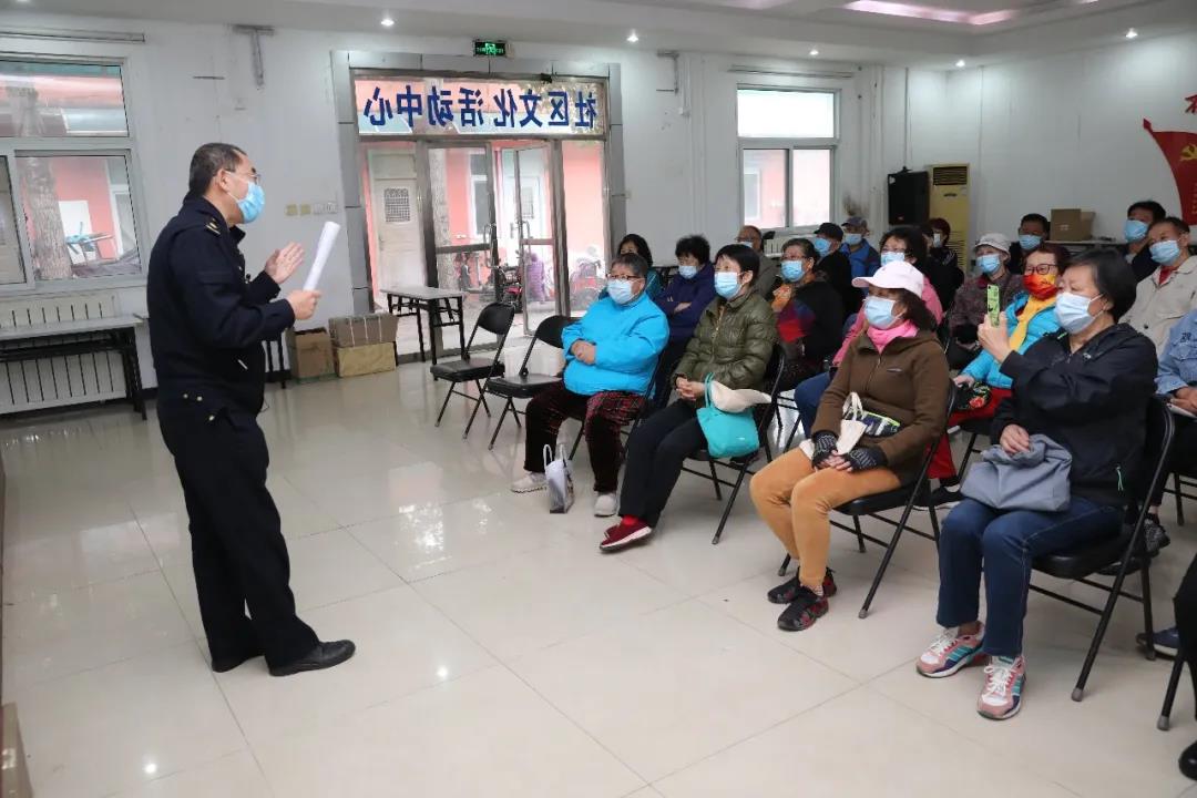 10月14日上午10点,在永铁苑社区活动中心数十名居民按照疫情防控社交距离间隔而坐,首先映入眼帘的是“普法宣传进社区 做新时代守法公民”标语。