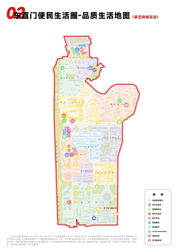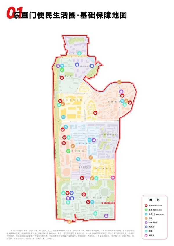 近年来,街道积极推进一刻钟便民生活圈建设,综合考量辖区人口分布、居民生活习惯、商业设施布局等,以东直门外大街为分界线,将辖区划分为南、北两大便民生活圈。2023年,街道率先对南片生活圈进行创建,以“优秀”等级通过市级验收,南片下辖六个社区,总面积1.3平方公里,人口近2.8万人。今年,北片生活圈建成,街道实现了一刻钟便民生活圈建设全覆盖。