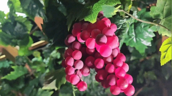 抬头看葡萄架,紫莹莹的果实上覆着一层恰到好处的白霜,凑近看竟能瞧见表皮的细微纹路,这便是国家级非遗“葡萄常”料器。