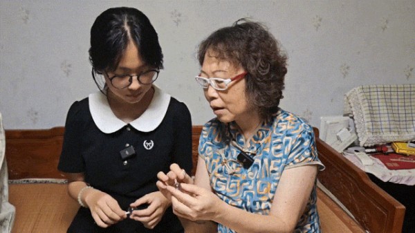 从小耳濡目染这门技艺的她,幼时就常与奶奶一同接受采访,此刻操作起来稍显青涩,却透着股手艺人的专注劲儿。