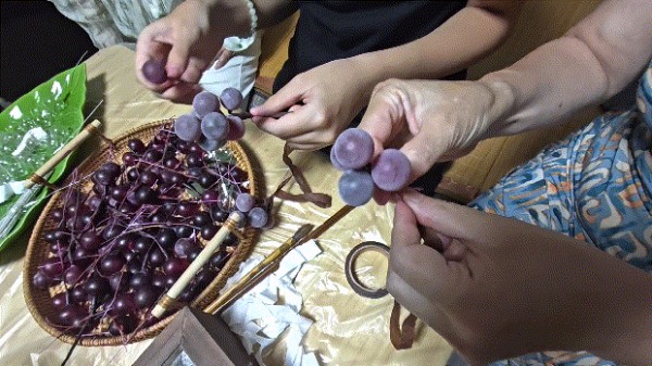 “咱们今天给葡萄‘上霜’,还记得怎么做吗?”常弘考孙女。“要先把‘霜儿’晃松散,转着圈均匀涂上。”小姑娘脆生生地回答,随即拿起一串葡萄珠,动作轻柔而精准,遇到涂不均匀处就拿起毛笔仔细填补。