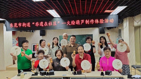 居民们从零开始,把一个个普普通通的葫芦,变成了带着温度的艺术品。学员们举着自己的作品——一幅幅精美的烙画荷花和火绘葫芦金鱼作品,笑得合不拢嘴,别提多有成就感啦!