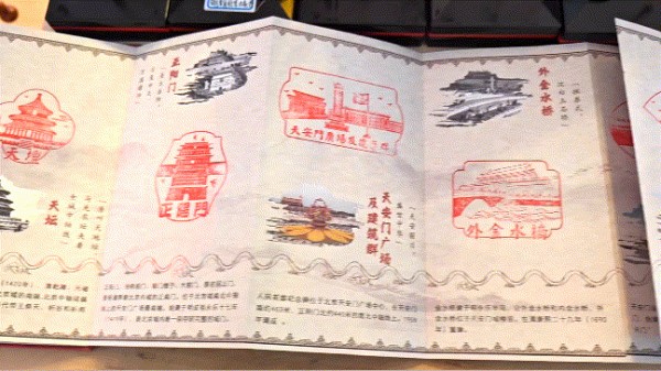 尤为值得一提的是这里的上百枚印章,它们以老北京为背景,将胡同、城门、小吃、民俗等元素巧妙地融入其中,一枚印章,一段故事。“中轴线印章”是必打卡内容,按顺序在本子上盖下各个点位的印章,仿佛中轴线全景也被你收入囊中了。