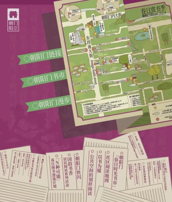 在今年首次开启的“春日赏书季”活动期间,街道通过“一个空间一本书”的方式,将朝阳门的文化历史、经典阅读、名人轶事、现代创意等“以书为媒”串联起来,带领大家读书、观景、赏朝阳门。