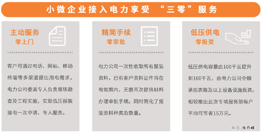 “以往,我们办理接电服务平均往返3到5次营业厅。今年2月,电力公司推出‘三零’服务后,不用跑营业厅,只需要提出需求准备资料就可以了,其它的事儿电力公司全给解决了。”位于北京西城区的中国三峡新能源有限公司负责人对这项业务赞不绝口,“我用手机下载了一个北京电力的‘掌上电力’APP,没想到2月7日下单,当天电力人员就来实地勘察,11日上午正式通电!”