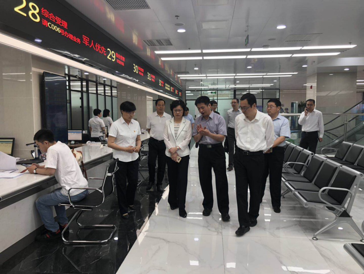 5月28日上午,金晖区长、邹劲松常务副区长采用“四不两直”方式对区政务服务中心进行实地检查,重点针对优化营商环境相关工作现场了解了窗口布局、服务功能设置、信息化智能终端、大厅秩序管理等情况,详细查看并询问了新企业开办“一窗办理、一次提交、一天办结”、政策天天讲专区及窗口服务态度等工作情况。金晖区长指出:一是强化窗口管理工作,针对营商环境工作加强培训,提升窗口人员对营商环境政策理解和运用能力;二是强化政务服务精细化管理,围绕优化流程、窗口服务、大厅环境等情况开展无死角自查,确保迎检万无一失;三是进一步提升首问责任制和一次性告知的服务意识,始终以良好的服务态度为企业群众提供贴心、暖心的政务服务。