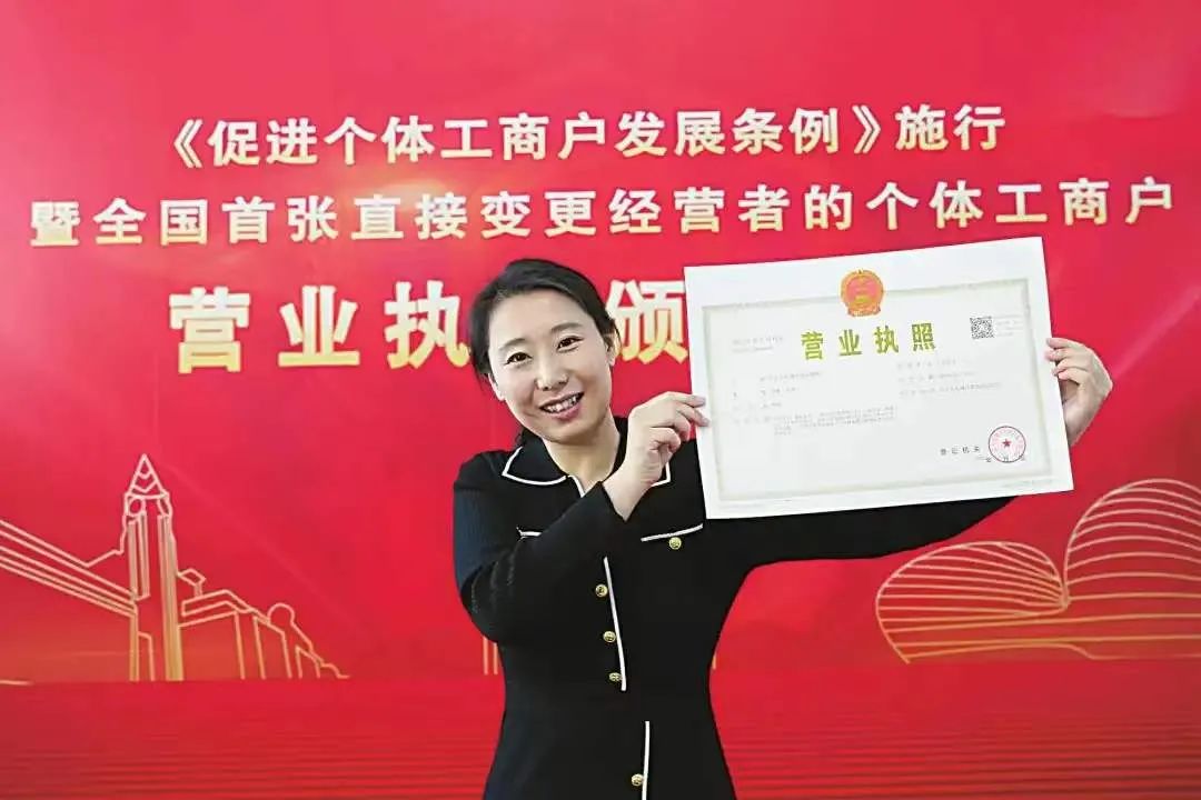 11月1日,《促进个体工商户发展条例》正式实施。当天下午,在东城区政务服务中心,“中国个体第一家”——悦宾饭馆第三代经营者郭华,领取了《条例》实施后全国首张直接变更经营者的个体工商户营业执照。
