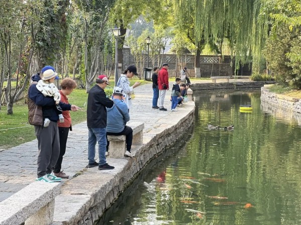 上午10点的三里河公园,时光被按下慢放键。几位老人坐在河边长椅上,话里话外是几十年的街坊情谊。住在草厂社区的张大爷守在岸边看鸭子嬉戏,语气里满是感慨,“改造后挖了水道,种了花草,现在天天来遛弯,比逛公园还舒服。”