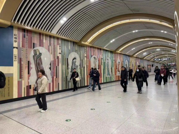 回到磁器口站,站厅内的《红楼梦》文化墙让人眼前一亮。黛玉葬花的凄美、宝玉摔玉的任性、宝钗扑蝶的灵动,十个场景用细腻笔触还原,像两幅展开的古典画卷。站内的“爱心预约”服务更添温暖,一位带着婴儿车的妈妈刚走到服务台,工作人员就迎了上来,“您预约的爱心引导,我带您过安检、换乘。”从7号线安检口到5号线换乘通道,工作人员一路帮忙,妈妈连声道谢:“带着孩子出门最怕麻烦,有这服务太安心了。”