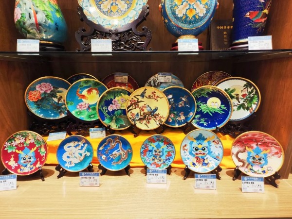 来到一楼的体验中心,游客还可以亲自体验点蓝技艺,选择心仪的图案模板,在技师的指导下拿起小铲舀取釉料,一点点填入铜胎的空隙中,看似简单,但想要填得均匀饱满却颇有讲究。完成的作品可以选择购买,经过烧制后带回家珍藏,亲手制作的过程更能让人体会到一代代手艺人的匠人精神。体验中心旁的文创商店同样人气颇高,精致的冰箱贴、可爱的毛绒玩具、实用的文件夹,每一件都融入了传统文化与现代设计。