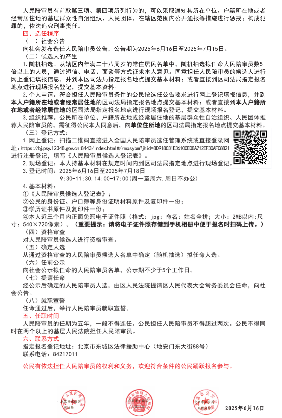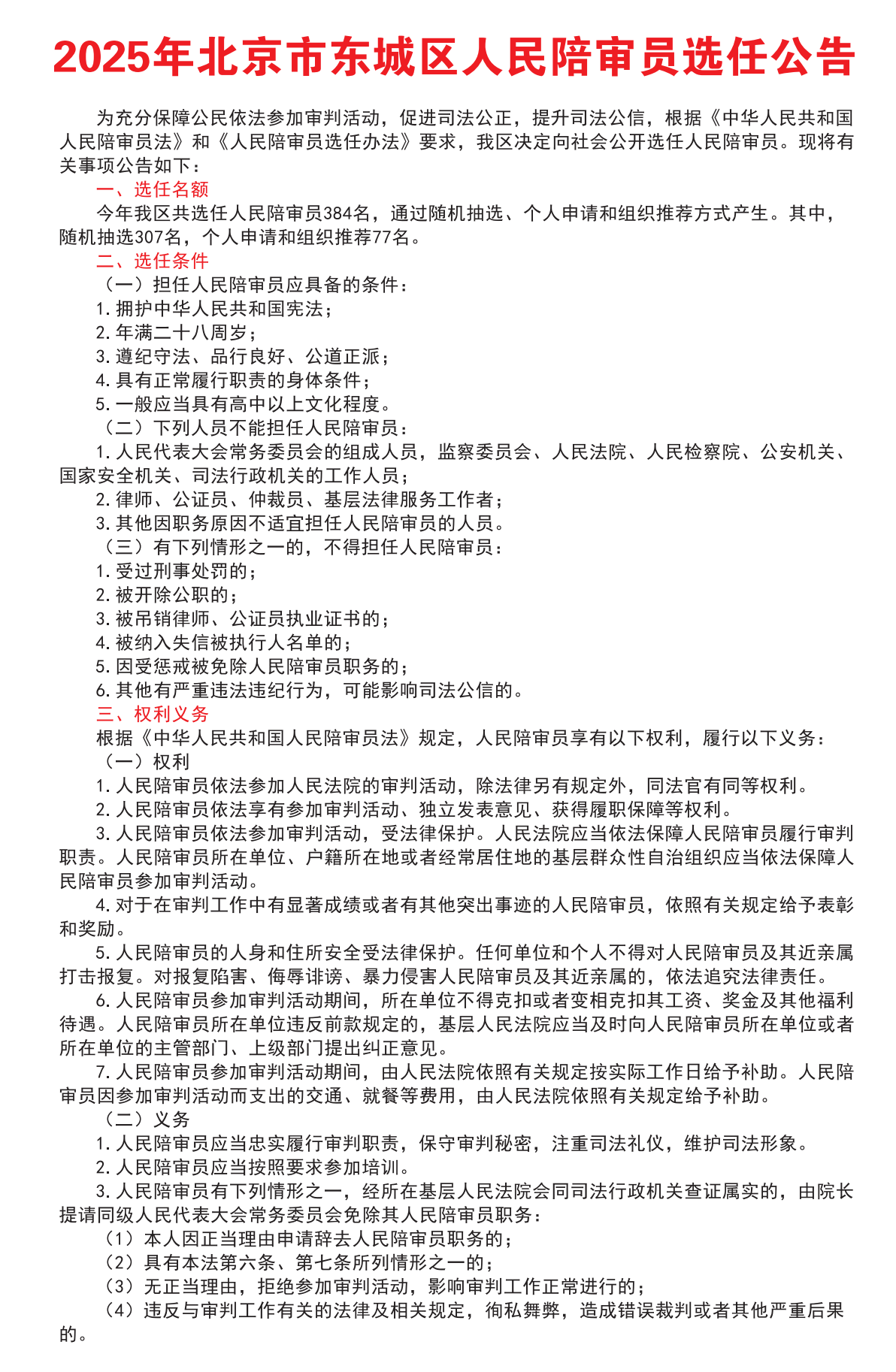 2025年北京市东城区人民陪审员选任公告