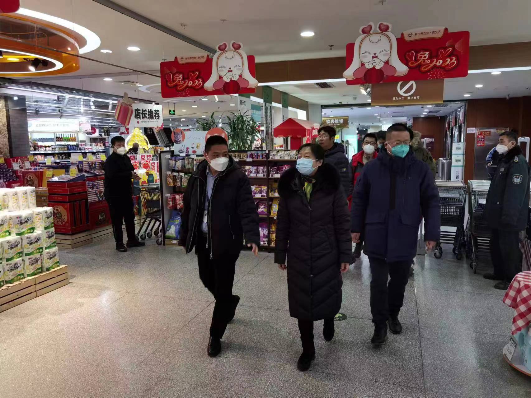 1月24日,李妍常务副区长对新世界商场超市春节期间安全生产、生活必需品保供稳价及促消费等工作进行了检查。崇外街道胡向军主任,区商务局彭朝晖副局长、邓学明副局长陪同检查。