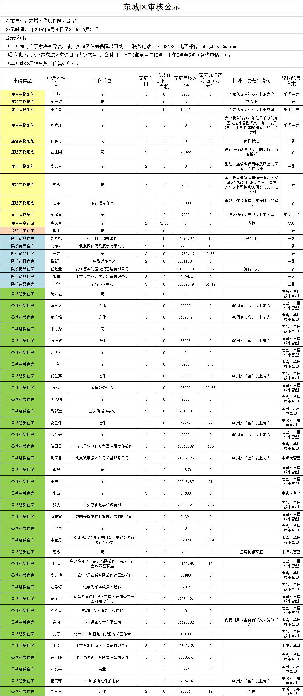 东城区保障住房最新公示(2015年9月25日)