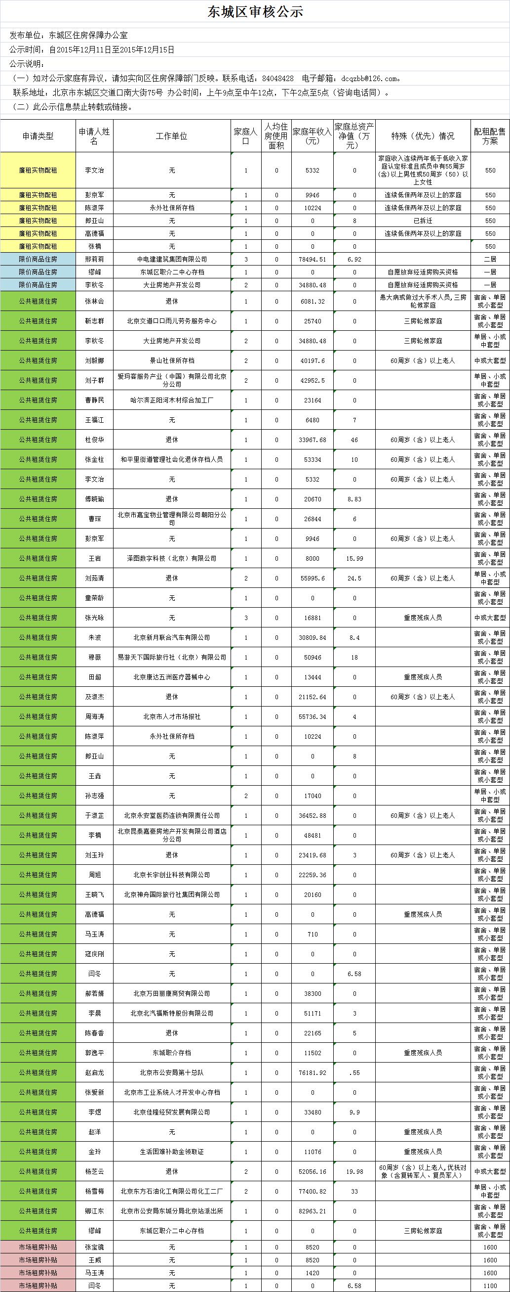东城区保障住房最新公示(2015年12月11日)