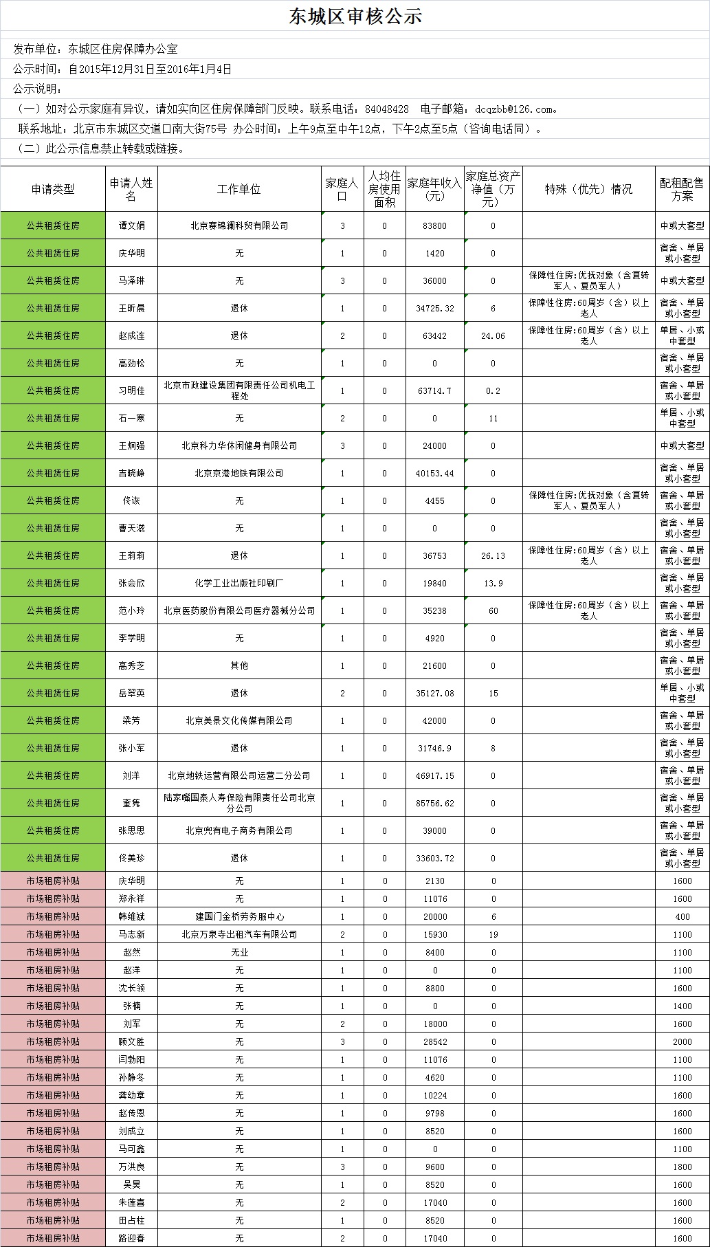 东城区保障住房最新公示(2015年12月31日)