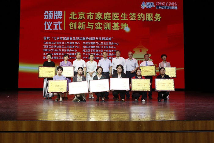 领导为《北京市家庭医生签约服务创新与实训基地》颁牌